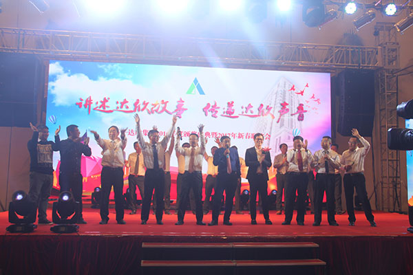 集團(tuán)高管們在澎湃的“達(dá)欣之歌”聲中激情登場,公司董事長馬和軍進(jìn)行了致辭答謝。他回顧了公司 一年來所取得的輝煌成績,感謝社會各界及公司全體同志們的努力,并對公司的未來發(fā)展之路描繪了藍(lán)圖;接著,縣委書記陸衛(wèi)東發(fā)表重要講話, 他指出,建筑業(yè)是我縣的傳統(tǒng)產(chǎn)業(yè),也是一個富民強勢產(chǎn)業(yè),還是我縣財政收入的重要來源之一,作為縣內(nèi)的骨干企業(yè),達(dá)欣公司步入了公司歷史以來發(fā)展最快、榮譽最高、分配最多、貢獻(xiàn)最大的時期,他希望公司要加快發(fā)展,高起點定位,突出重點,好中求快,實現(xiàn)達(dá)欣新飛躍。