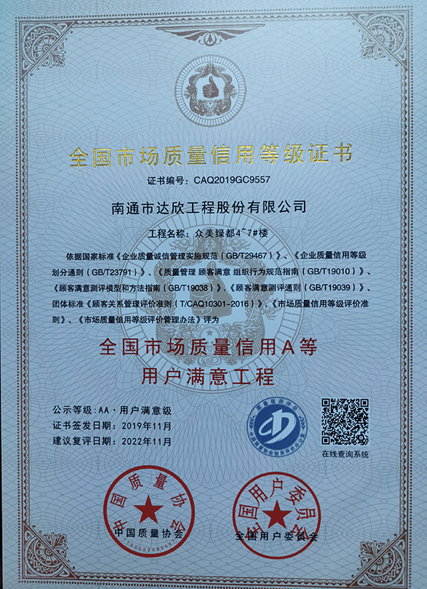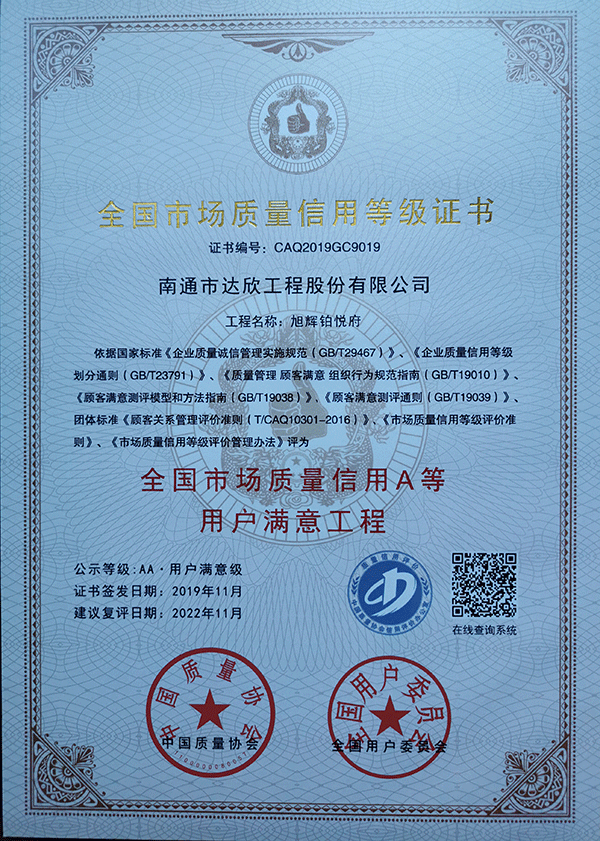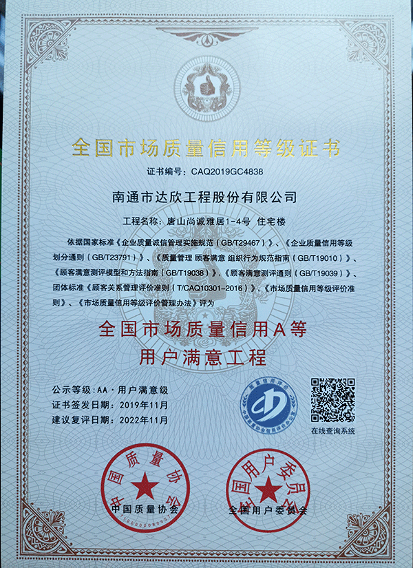 一舉獲得三項(xiàng)殊榮不僅僅是向外界展示了達(dá)欣集團(tuán)在工程建設(shè)上的技術(shù)實(shí)力和精品工程信譽(yù)度,更是達(dá)欣集團(tuán)在工程建設(shè)中以“質(zhì)量贏得市場(chǎng),使企業(yè)建立較強(qiáng)的市場(chǎng)競(jìng)爭(zhēng)力”。