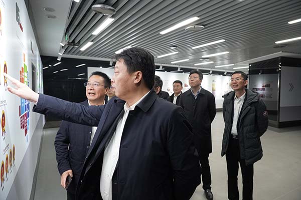 于立忠等領(lǐng)導(dǎo)參觀了企業(yè)展示中心、馬和軍勞模創(chuàng)新工作室黨支部,觀看了達欣集團“紅旗鐵軍”專題片,了解了集團在黨員管理工作方面“實施項目化管理,樹達欣黨建鐵軍品牌”的特色做法。在企業(yè)展示中心,于立忠系統(tǒng)了解了企業(yè)40多年來的發(fā)展歷程和集團黨委開展的四項融合、四微黨建、三項目標的“四四三”黨建工作法,以及具有達欣特色的“工地黨旗美如畫”黨建工作。