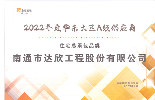 達(dá)欣集團(tuán)自2018年與華潤(rùn)置地合作以來(lái),在無(wú)錫、南京、南通、蘇州等地,依據(jù)完善的工程質(zhì)量管理體系,項(xiàng)目品質(zhì)及履約標(biāo)準(zhǔn)先后得到華潤(rùn)置地大區(qū)公司、華潤(rùn)置地的年度贊譽(yù)與肯定。