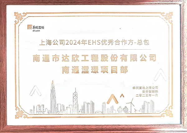 公司自與華潤(rùn)置地合作以來(lái),憑借專業(yè)的能力、優(yōu)質(zhì)的服務(wù)和高效的協(xié)作,在眾多合作方中脫穎而出,榮獲華潤(rùn)置地上海公司“2024年EHS優(yōu)秀合作方-總包”稱號(hào)。