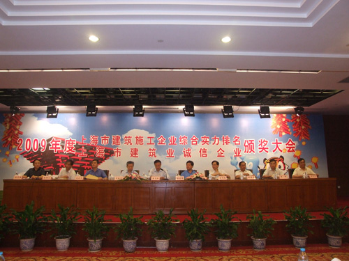2010年7月30日,2009年度上海市建筑施工企業(yè)綜合實(shí)力及上海市建筑業(yè)誠信企業(yè)頒獎(jiǎng)大會在青松城會議中心召開。出席會議的有上海市建委、上海市建管辦、市場管理總站、施工行業(yè)協(xié)會、各省滬辦領(lǐng)導(dǎo)以及獲獎(jiǎng)企業(yè)共四百多人參加。