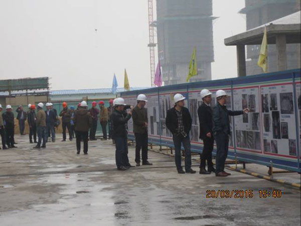 施工現(xiàn)場,項目經(jīng)理崔益明就工程概況、文明工地創(chuàng)建采取的措施、質(zhì)量管理方面新工藝、新材料革新以及采用樣板引路所取得的成效向來訪嘉賓作了詳細(xì)介紹??疾旒钨e們一行先后參觀了11#、12#地塊現(xiàn)場文明施工、樣板展示區(qū)、結(jié)構(gòu)實體工程,對該項目部施工生產(chǎn)、安全質(zhì)量、現(xiàn)場文明等方面給予了高度評價。蘇州新湖置業(yè)王總表示希望在蘇州區(qū)域保持良好持久合作的基礎(chǔ)上,將積極推薦我司參與新湖中寶其他區(qū)域公司的項目合作。